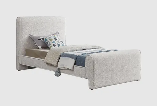 Bexley Cream Twin Boucle Upholstered Platform Bed pairs plush comfort with a clean modern profile designed for kids' rooms. Upholstered in cream boucle with foam padding over an engineered wood frame, it provides a soft, woven texture that invites cozy layering. The platform base supports a twin mattress without a box spring, while reliable joinery and thoughtful proportions keep the bed ready for daily use as tastes evolve.