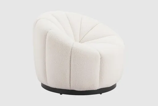 The Bhutan Cream White Shearling Fabric Curved Accent Chair is the perfect addition to any modern living space. With its armless design and soft, cream-colored fabric, this chair offers both comfort and style. Its curved shape provides a unique and contemporary touch, making it an excellent choice for family rooms or common areas. Features a cozy imitation shearling fabric made from 100% polyester. Constructed with durable plywood and steel materials. Perfect for living rooms, providing both comfort and modern appeal.