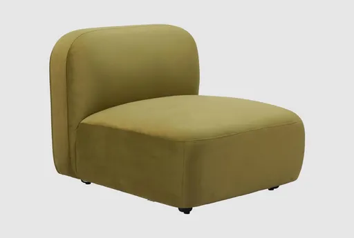 The Biak Green Fabric Armless Chair is a stylish addition to any living room. Its modern design and soft green color create a calming and inviting atmosphere. The chair's armless and curved features provide both comfort and a contemporary look.