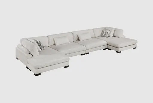 Experience the ultimate in comfort and versatility with the Bianca Beige Microfiber 180" 4 Piece Modular Sectional with Double Chaise Lounge. This casual, reversible sectional is designed to create a cozy and inviting living room space. Upholstered in soft beige fabric made from 100% polyester, this sectional offers ample seating and relaxation options for your family and guests.