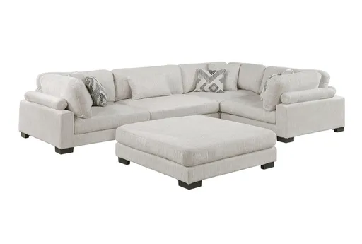 The Bianca Beige Microfiber 135" 5 Piece Modular Sectional with Ottoman is perfect for your living room. This right-facing sectional offers a comfortable and inviting space for relaxing or entertaining guests. The beige fabric, made from 100% polyester, adds a cozy touch to any setting.