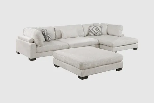 The Bianca Beige Microfiber 135" 4 Piece Modular Sectional with Right Arm Facing Chaise and Ottoman is a perfect addition to your living room. Its casual style and natural color blend seamlessly with any décor. Designed for comfort and versatility, this sectional provides ample seating and a cozy spot to relax.