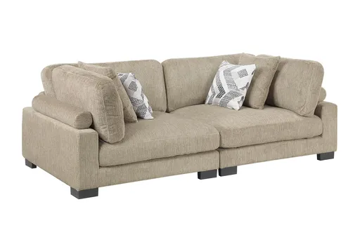 The Bianca Brown Microfiber 2 Piece Modular Loveseat is the perfect addition to your living room. Designed for comfort and versatility, this modular loveseat offers a relaxing seating experience with its pillow top arms and loose back cushions. The natural beige color complements any decor, making it a timeless choice for your home.