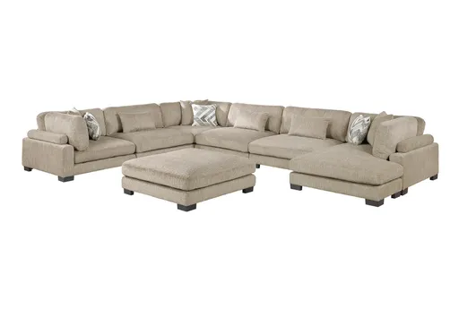 Experience supreme comfort and versatile style with the Bianca Brown Microfiber 135" 7 Piece Modular Sectional With Ottoman. Designed for casual living, this sectional brings a relaxed and inviting atmosphere to any living room. The reversible orientation and modular design make it easy to fit into various spaces, while the soft polyester fabric ensures a cozy feel.