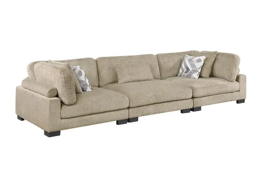 The Bianca Brown Microfiber 135" 3 Piece Modular Sofa is a versatile and comfortable addition to any living room. Its casual style and neutral brown color make it a perfect fit for various decor themes. The sofa is designed with 100% polyester fabric, ensuring durability and easy maintenance.