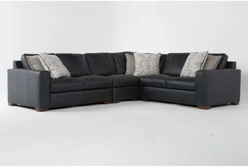Big Sur Blue Leather 136" 4 Piece L-Shaped Modular Sectional | Furnzy.com - Shop local furniture stores in one place
