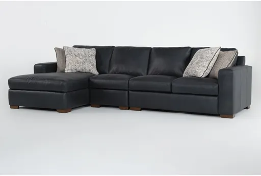 Big Sur Blue Leather 136" 3 Piece Modular Sectional with Left Arm Facing Chaise | Furnzy.com - Shop local furniture stores in one place
