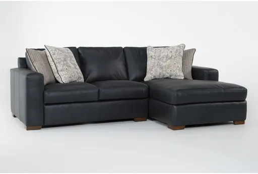 Big Sur Blue Leather 108" 2 Piece Modular Sectional with Right Arm Facing Chaise