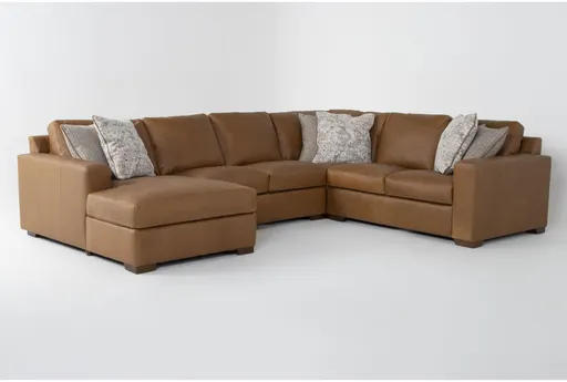 Big Sur Saddle Brown Leather 141" 4 Piece U-Shaped Modular Sectional with Armless Loveseat & Left Arm Facing Chaise | Furnzy.com - Shop local furniture stores in one place
