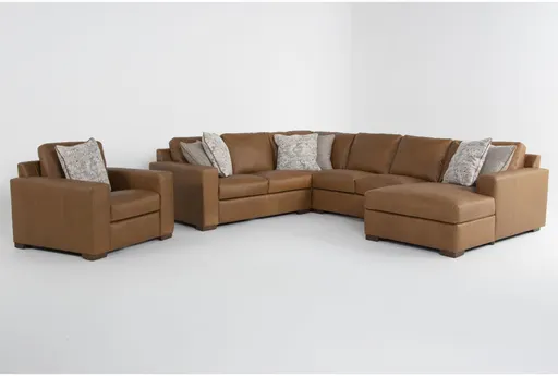 Big Sur Saddle Brown Leather 141" 4 Piece U-Shaped Modular Sectional with Armless Loveseat Right Arm Facing Chaise & Chair | Furnzy.com - Shop local furniture stores in one place