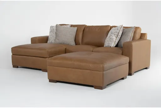 Big Sur Saddle Brown Natural Leather 2 Piece Modular Sectional with Left Arm Facing Chaise & Cocktail Ottoman | Tufted | Furnzy.com - Shop local furniture stores in one place