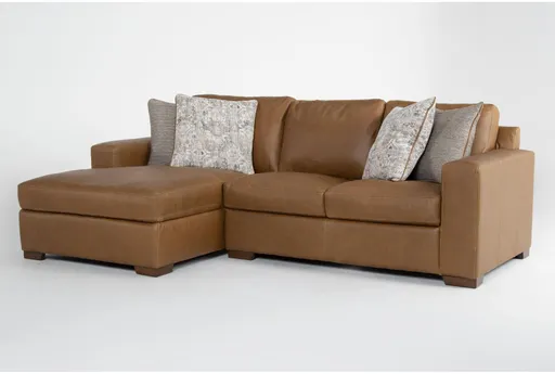 Introducing the Big Sur Saddle Brown Natural Leather 108" 2 Piece Modular Sectional with Left Arm Facing Chaise. Perfect for your living room, this sectional offers a blend of casual style and luxurious comfort. The modular design allows you to customize the layout to fit your space, while the volcano saddle color provides a warm, inviting atmosphere.