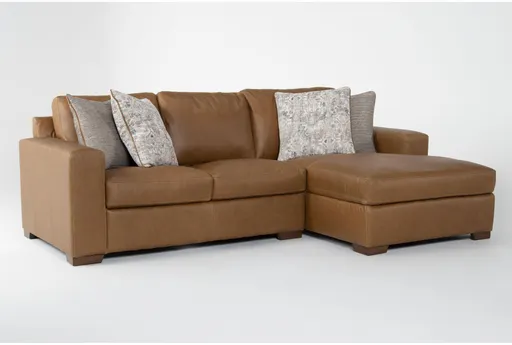 The Big Sur Saddle Brown Natural Leather 108" 2 Piece Modular Sectional with Right Arm Facing Chaise is perfect for your living room. Its modular design allows for versatile arrangement, while the rich VOLCANO SADDLE leather provides a timeless appeal. This sectional offers both comfort and style for any family or great room.