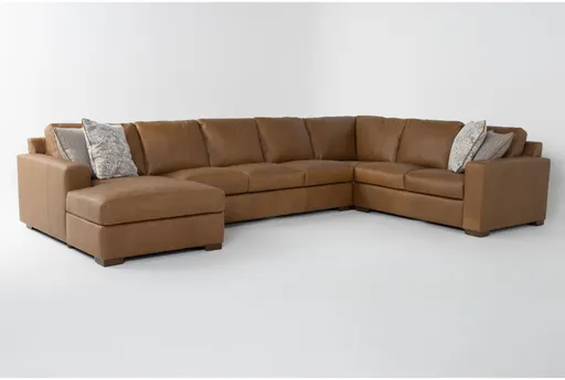 Big Sur Saddle Brown Natural Leather 169" 4 Piece U-Shaped Modular Sectional with Armless Sofa & Left Arm Facing Chaise | Furnzy.com - Shop local furniture stores in one place