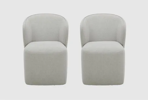 Enhance your dining space with the Bingo Linen Modern Barrel Back Dining Chair Set. These armless chairs feature a stylish quartermaster linen color that complements any decor. Perfect for both your dining room and kitchen, these chairs offer a comfortable and contemporary seating option. Set of 2 armless chairs. Made of 100% polyester in quartermaster linen. Modern barrel back design.