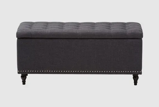 The Bjorn Dark Grey Fabric Upholstered Button-Tufting Storage Ottoman Bench is a stylish and functional addition to any entryway or living space. Its modern design is complemented by classic elements, making it a versatile piece that fits seamlessly into various decor styles. The dark grey fabric upholstery and grid-tufting detail add a touch of sophistication, while the storage feature provides practical utility.