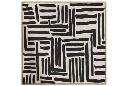 Meet the 24''X24'' Black Maze Painted Fabric Canvas. This piece is a great addition to any room. It is made of high-quality materials and is built to last. The dimensions are 24"W x 1.4"D x 24"H. The style is Modern. The color family is Black, Beige. The material is Linen. The art type is Framed Canvas Art. The subject is Abstract. The material content is 90% Linen, 5% Wood, 5% MDF.