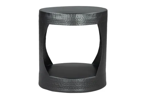 Enhance your living room with the 18" Black Metal Iron Round Accent Table. This modern piece combines sleek design with functionality, making it an ideal addition to any contemporary space. Its black iron construction ensures durability, while the round shape and built-in shelves provide convenient storage options.