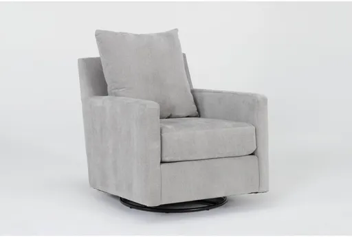 Bonaterra Dove Grey Natural Fabric Swivel Glider Armchair offers casual, club-style seating with a compact footprint that works well in living rooms, nurseries and small spaces. Covered in dove grey 100% polyester fabric with a piped edge and a tight back, it provides supportive foam seating that’s comfortable for reading or nursing. A low-profile track arm and alder wood accents keep the silhouette clean and easy to pair with existing pieces, while the swivel glider base lets you rotate and glide quietly.