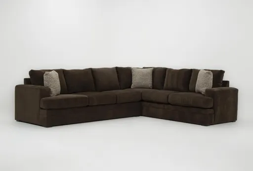 Bonaterra II Chocolate 127" 2 Piece Sectional With Left Arm Facing Queen Sleeper Sofa brings flexible seating plus a queen-size sleeper to your living room. Upholstered in 100% polyester fabric with a chenille texture, it offers medium seating firmness that balances support and comfort for everyday use. The two-piece layout and left-arm-facing orientation simplify placement, while low-profile track arms and box cushions create a casual silhouette that fits contemporary living spaces. Comfortable medium seating firmness for everyday lounging. Queen-size sleeper opens to accommodate overnight guests. Two-piece configuration with left-arm-facing orientation for flexible placement. Individually pocketed coils with fiber layer for enhanced comfort and support.