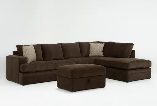 Bonaterra II Chocolate 127" 2 Piece Sectional With Left Arm Facing Sleeper Sofa + Right Arm Facing Corner Chaise & Ottoman | Furnzy.com - Shop local furniture stores in one place