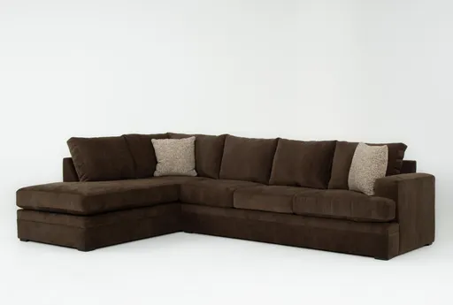Bonaterra II Chocolate 127" 2 Piece Sectional With Right Arm Facing Sleeper Sofa & Left Arm Facing Corner Chaise brings casual comfort to the living room with a roomy corner chaise and a right-arm-facing queen sleeper for overnight guests. Upholstered in 100% polyester fabric with chenille accents, it provides a medium comfort level and supportive seating for daily use. The two-piece configuration helps with placement and the queen-size pull-out sleeper makes hosting easy when guests stay over. Versatile layout: Two-piece sectional with left-arm corner chaise and right-arm-facing queen sleeper maximizes seating and sleeping options. Comfort and fabric: Medium comfort cushions sit on 100% polyester upholstery with chenille accents for a soft, easy-care finish. Delivery notes: Oversized item—measure doorways and hallways and plan delivery assistance as needed. Individually pocketed coils with fiber layer for enhanced comfort and support.