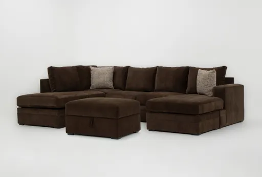 Bonaterra II Chocolate 127" 2 Piece Sectional With Right Arm Facing Sofa Chaise + Left Arm Facing Corner Chaise & Ottoman offers roomy, casual seating for living rooms with a deep, welcoming profile that invites lounging and gatherings. Upholstered in chenille, a 100% polyester fabric, it delivers a soft, textured surface and medium comfort that suits everyday use. The two-piece layout and included ottoman let you configure seating to fit your space and add an extra place to kick up your feet.