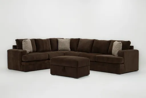Bonaterra II Chocolate 127" 2 Piece Sectional With Right Arm Facing Sofa & Ottoman offers roomy, casual seating for living rooms and includes a matching ottoman that expands your lounging options. Upholstered in chenille fabric and set on coil seating, it delivers medium comfort with responsive support for everyday use. The two-piece layout with a right-arm-facing sofa makes arranging this sectional easy so you can relax with a book or host movie nights.