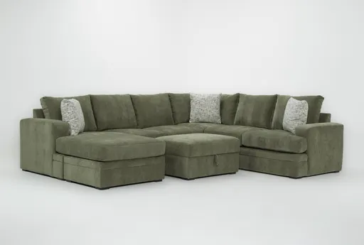 The Bonaterra II Forest Green 127" 2 Piece Sectional With Left Arm Facing Queen Sleeper Sofa Chaise & Ottoman brings versatile seating and a queen-size sleeper to casual living rooms. Upholstered in 100% polyester fabric with chenille accents and a medium comfort cushion profile, the chaise and included ottoman expand lounging options while offering a textured, inviting touch. Its two-piece layout with a left-arm-facing chaise helps simplify placement and delivery for larger rooms and makes it easy to convert for overnight guests.