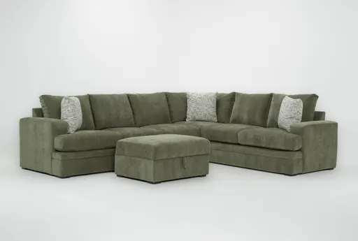 Bonaterra II Forest Green 127" 2 Piece Sectional With Left Arm Facing Queen Sleeper Sofa & Ottoman | Furnzy.com - Shop local furniture stores in one place