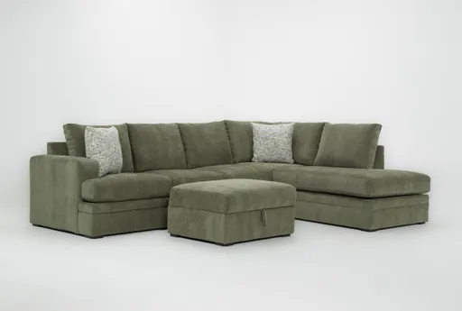 Bonaterra II Forest Green 127" 2 Piece Sectional With Left Arm Facing Sleeper Sofa + Right Arm Facing Corner Chaise & Ottoman pairs generous seating with a built-in queen-size sleeper so you can host overnight guests without sacrificing daily comfort. Upholstered in polyester chenille, it offers medium support and a soft, textured feel across a two-piece layout with a matching ottoman. The left-arm facing sleeper and right-arm facing corner chaise create flexible arrangements that suit casual living rooms for movie nights, lounging, or entertaining.