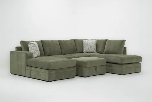 Bonaterra II Forest Green 127" 2 Piece Sectional With Left Arm Facing Sofa Chaise + Right Arm Facing Corner Chaise & Ottoman brings roomy, casual comfort to your living room with a versatile two-piece layout and an included ottoman for extra seating or a footrest. Upholstered in chenille fabric (100% polyester), it delivers a soft texture while the medium comfort level balances support and sink for everyday lounging. Deep seats and a low-profile silhouette make it an inviting spot for movie nights, reading, or hosting friends.