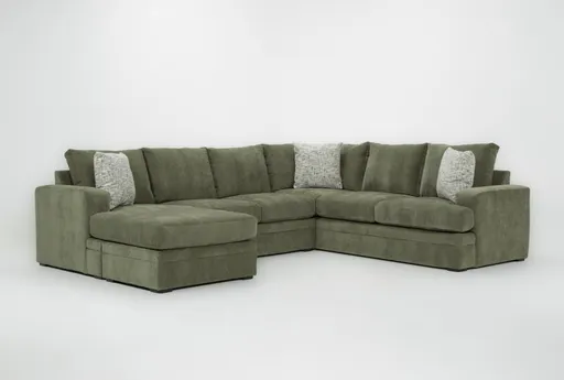 The Bonaterra II Forest Green 127" 2 Piece Sectional With Left Arm Facing Sofa Chaise offers generous seating in a relaxed, casual profile that suits family rooms and open living areas. Upholstered in 100% polyester with a chenille texture, it combines a soft hand with everyday durability while medium-support cushions balance comfort and resilience. The two-piece layout with a left-arm chaise lets you orient the sectional to your space and simplifies placement during delivery and setup.