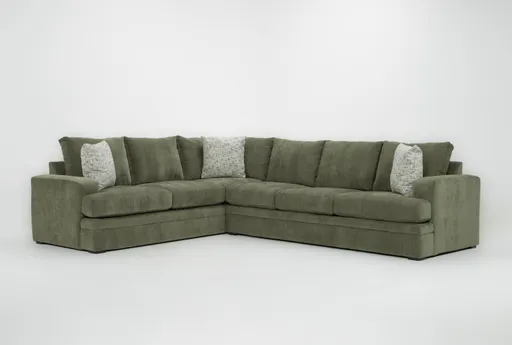 Bonaterra II presents a roomy forest green two-piece sectional with a right-facing sofa that invites relaxed, casual living. Upholstered in a chenille and polyester blend, the l-shaped layout pairs deep box seat cushions with loose back cushions to deliver plush comfort with medium support. Coil seating under the cushions and a platform base contribute responsive support and structural integrity so the sectional holds its shape through everyday use. Clean lines, track arms, and a boxy silhouette give this modular sofa a modern living room furniture presence that anchors conversation areas and family rooms. The modular two-piece design lets you reconfigure seating for larger groups while reinforced frame elements help ensure dependable support for movie nights and long lounging sessions. Spot clean and vacuum regularly to preserve the durable upholstery and keep this inviting, cushioned centerpiece looking its best.