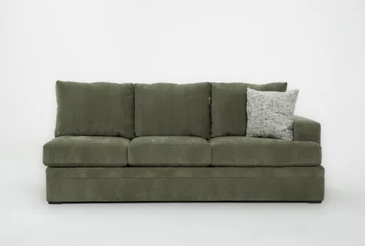 The Bonaterra II Forest Green Right Arm Facing Sleeper Sofa brings casual comfort to your living room with a queen-size pull-out sleeper and medium comfort seating that's ideal for everyday lounging. Upholstered in 100% polyester fabric with chenille accent cushions, it offers a soft hand and textured look that holds up to regular use. The right-arm-facing layout fits corners and sectional arrangements, making it easy to host overnight guests or create a cozy TV-watching spot.