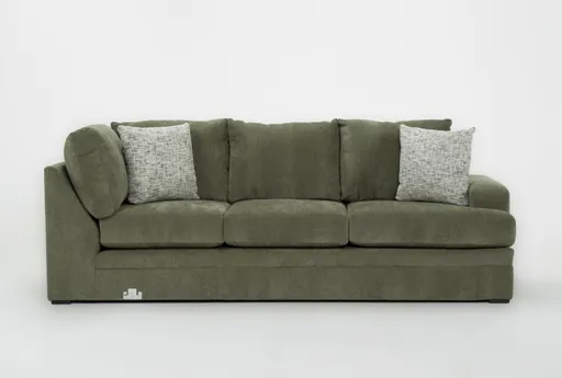 Bonaterra II Forest Green Right Arm Facing Tux Sofa pairs a tailored tux silhouette with everyday comfort, making it a relaxed centerpiece for a casual living room. Upholstered in 100% polyester fabric with chenille accents, it offers a soft, textured surface that holds up to daily use. Medium-support seat cushions deliver balanced comfort for lounging or hosting, and the right-arm-facing orientation helps the sofa fit common room layouts.