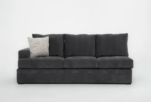 Bonaterra II Gun Metal Left Arm Facing Sofa brings casual comfort to the living room with gun metal grey chenille upholstery in 100% polyester and a medium seating profile that supports everyday use. The left arm facing orientation and low-profile silhouette make it easy to plan placement, while supportive seat cushions keep the sofa comfortable for long conversations or movie nights. This is an oversized item, so measure doorways and plan delivery to ensure it fits your space.
