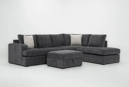 Two-piece sectional includes left-arm facing sleeper sofa, right-arm facing corner chaise and an ottoman for flexible seating