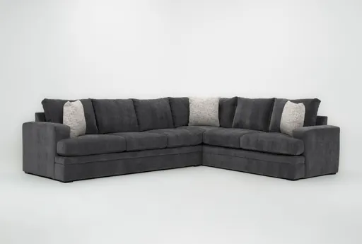 Bonaterra II Gun Metal 127" 2 Piece Sectional With Left Arm Facing Sofa brings roomy, casual comfort to the living room with a generous 127-inch footprint and a two-piece layout that adapts to different floor plans. Upholstered in chenille with 100% polyester content, it pairs medium-level seat firmness with plush back cushions for balanced support during long evenings. The left-arm-facing sofa anchors the configuration and oversized item tips simplify delivery and placement. Imagine curling up here with a book or hosting a family movie night.