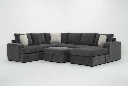 * Spacious 127-inch two-piece layout with right-arm-facing chaise and ottoman, plus medium-support cushions for versatile comfort