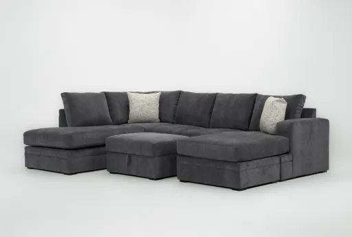Bonaterra II Gun Metal 127" 2 Piece Sectional With Right Arm Facing Sleeper Sofa Chaise + Left Arm Facing Corner Chaise & Ottoman puts flexible seating and a guest-ready sleeper at the center of your living room. This two-piece casual sectional is upholstered in gun metal grey chenille with a 100% polyester face, providing a soft hand and reliable everyday performance. The right-arm-facing sleeper sofa chaise, left-arm-facing corner chaise and included ottoman offer versatile seating plus a queen-size sleeper for overnight guests, perfect for movie nights and hosting visitors.