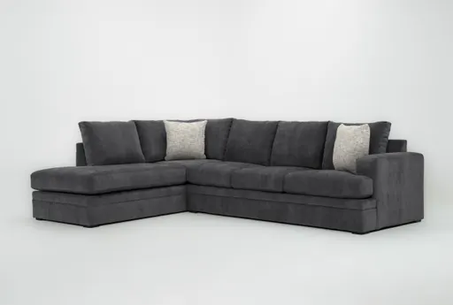 The Bonaterra II Gun Metal 127" 2 Piece Sectional With Right Arm Facing Sofa & Left Arm Facing Corner Chaise brings roomy, relaxed seating to the living room with a casual profile suited for everyday life. Upholstered in gun metal chenille fabric (100% polyester), it delivers medium comfort-level seating that balances support and softness for TV nights and gatherings. The two-piece layout, with a right-arm-facing sofa and left-arm-facing corner chaise, spans 127 inches to provide generous seating while staying easy to arrange in most spaces.