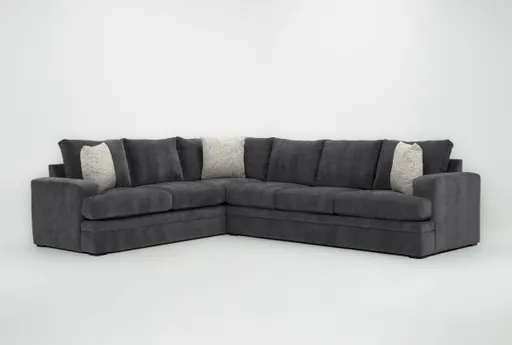 Bonaterra II Gun Metal 127" 2 Piece Sectional With Right Arm Facing Sofa brings casual comfort to the living room with a roomy two-piece layout and medium-support cushions for everyday lounging. Upholstered in 100% polyester fabric with a chenille texture, it resists wear while offering a soft hand. The right-arm-facing sofa and low-profile arms make placement simple for corner arrangements and relaxed seating.