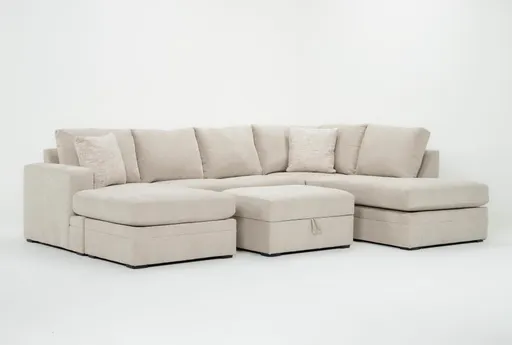 Bonaterra II Sand 127" 2 Piece Sectional With Left Arm Facing Sleeper Sofa Chaise + Right Arm Facing Corner Chaise & Ottoman offers generous seating and converts to a queen-size bed, making it a versatile centerpiece for the living room. Upholstered in 100% polyester fabric in a warm sand tone, it pairs medium comfort seat cushions with a deep chaise and a removable ottoman for relaxing and napping. Chenille accent pillows add texture, while the sleeper mechanism pulls out into a queen bed for overnight guests, so you can host comfortably without sacrificing everyday seating.