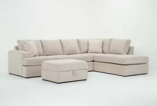 Bonaterra II Sand 127" 2 Piece Sectional With Left Arm Facing Sleeper Sofa + Right Arm Facing Corner Chaise & Ottoman brings casual comfort to the living room with a queen-size sleeper and a matching ottoman for extra seating and overnight guests. Upholstered in 100% polyester fabric with chenille accents, it offers a medium comfort level that balances support and softness for daily use. The corner chaise creates a relaxed lounging spot while the sleeper converts easily when visitors stay over.