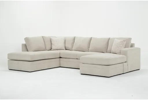 Bonaterra II Sand 127" 2 Piece Sectional With Right Arm Facing Sleeper Sofa Chaise & Left Arm Facing Corner Chaise pairs roomy chaise seating with a queen-size sleeper so you can host overnight guests without sacrificing everyday comfort. Upholstered in durable 100% polyester chenille, it delivers a medium comfort level supported by coil seating for balanced support and lasting resilience. The casual profile and two-piece layout let you arrange the seating to suit your living room and create a relaxed spot for lounging and entertaining.