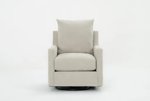 Bonaterra II Sand 29.5-inch Swivel Glider Arm Chair | Nursery Chair pairs casual, clean-lined design with practical comfort for small spaces. Upholstered in beige chenille 100% polyester, the cover feels soft to the touch and wears well thanks to its high performance fabric. The swivel glider motion lets you rotate and rock smoothly, while low-profile track arms keep the silhouette compact and nursery-friendly. A medium-support seat cushion and the included accent pillow make this an inviting spot for feeding, reading, or a quiet cup of coffee in a living room or nursery.