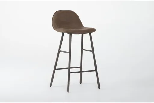 Enhance your dining room with the Bonham Brown Faux Leather 29.5" Barstool. This industrial-style barstool features a natural faux leather seat and sturdy metal legs, creating a modern yet rustic look. The curved, armless design ensures comfort without compromising style.