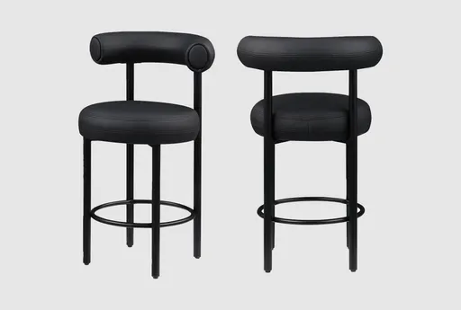 Enhance your dining experience with the Bora Black Vegan Leather Fabric Upholstered 35.5" Counterstool. This modern set of 2 armless stools combines style and functionality, perfect for your kitchen or dining room. The matte black leg frame and curved design add a contemporary flair to your space.