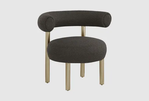 The Bordeaux Brown Boucle Fabric Accent Chair offers a modern touch to any living room with its unique curved design and armless structure. Upholstered in a rich brown boucle fabric, this chair combines comfort with contemporary style, making it an ideal addition to any home.